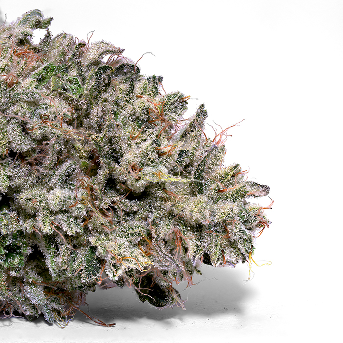Moose Tracks blends dark, indulgent dessert flavors with a subtle gassy edge. Expect rich chocolate, roasted nuts, and creamy peanut butter layered with dark roast coffee and a quiet fuel note underneath. The buds are chunky and bulbous with deep greens and purple hues. This strain feels heavy and decadent, like a late-night scoop of something extra indulgent.